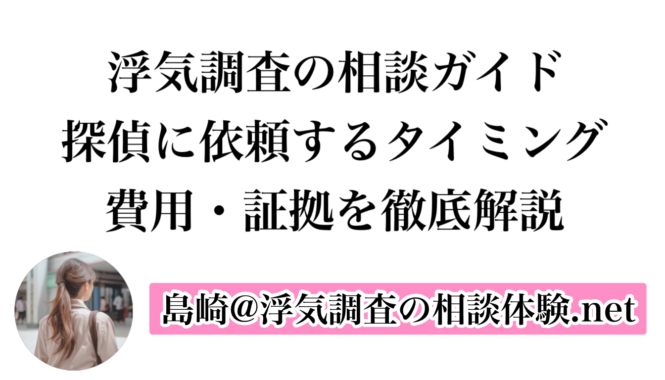このサイトでは、浮気調査を考え始めた人に向けて、相談するタイミング、調査で何がわかるのか、証拠の考え方、費用、契約トラブル、慰謝料、実際の体験談まで解説しています。