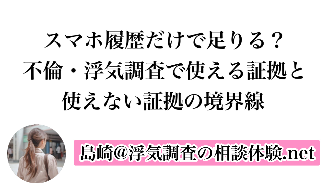 状況証拠は「浮気の可能性を高める材料」にはなりますが、「浮気の事実を証明する材料」にはなりにくいという点が、スマホ履歴の本質的な限界です。