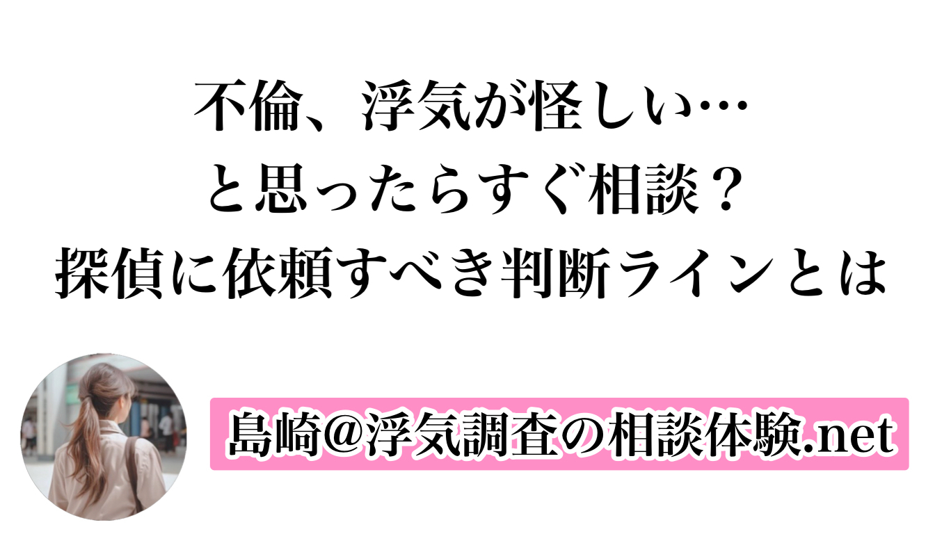 たとえば、パートナーの帰宅時間が急に変わったとか、スマホを見られたくないような仕草が増えたとか、日常の小さな違和感が続くときに、友人に話しても「気のせいじゃない?」と言われて終わることがほとんどです。