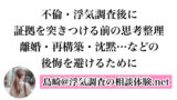 料金の安さだけで飛びつかず、報告書の質や信頼性を重視して比較検討することが、最短で後悔のない結果につながります。